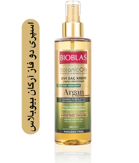 اسپری دو فاز مو بیوبلاس مدل آرگان حجم 200 میل موهای خشک و آسیب دیده bioblas اصل ترکیه