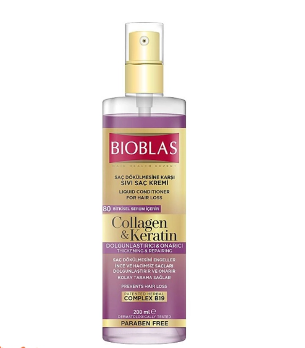 اسپری دوفاز ضدریزش بیوبلاس حاوی کلاژن و کراتین حجم 200 میل محصولی بسیار تاثیرگذار و کاربردی از شرکت بیوبلاسBIOBLAS ترکیه
